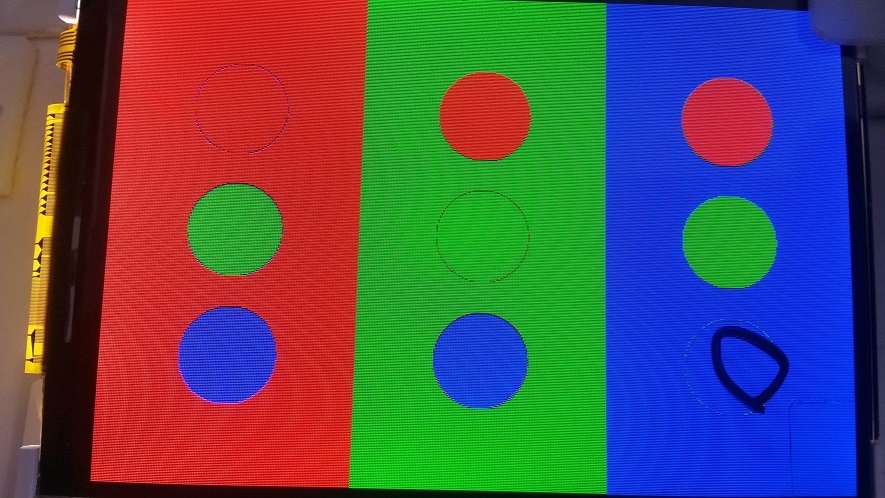 The problem is with the anti-aliased circles (maybe other polygons are involved too). The colors which are used by the library is not correct. Look at the picture: there are Red green and blue circles on red green and blue rectangles. I think the red circle on red background shouldn’t be seen. Attached the picture