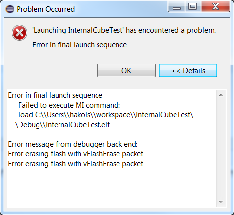 I get a Eclipse error pop-up and this printed in the openOCD log: