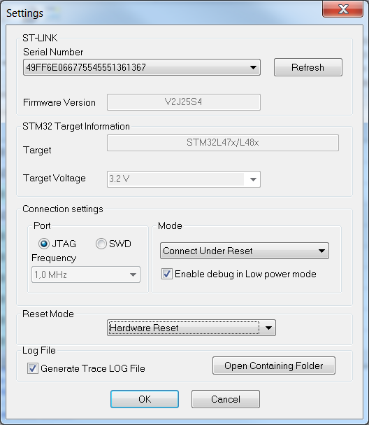 Can’ JTAG a STM32L476 with a ST_LINK/v2.