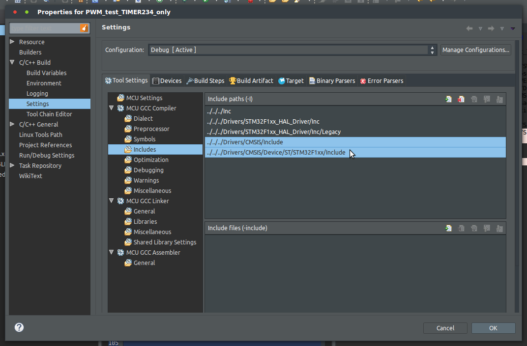 CMSIS paths all included in the compiler includes.