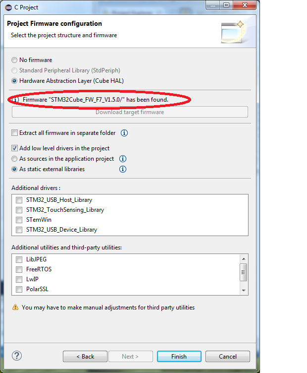 while creating a New C Project for STM32F7 family I have chosen to download STMCubeF7 from within Project Creator.