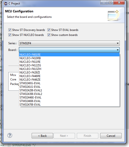 I entered project name and chose “AC6 STM32 MCU Project”. Then I clicked “Next” and selected Debug and Release. Then I clicked “Next” and have gone to MCU Selection screen.
