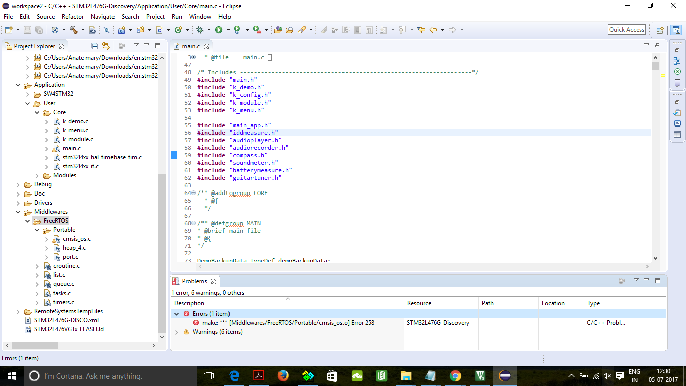 make: *** Middlewares/FreeRTOS/Portable/cmsis_os.o Error 258 STM32L476G-Discovery C/C++ Problem