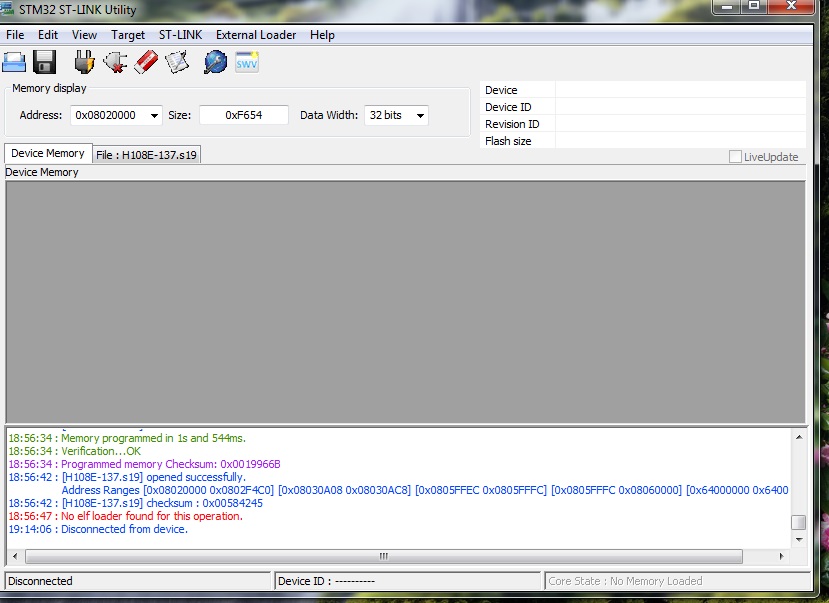 - afterwards you should have an “External Loader” in the menu and flashing *.HEX file should work now