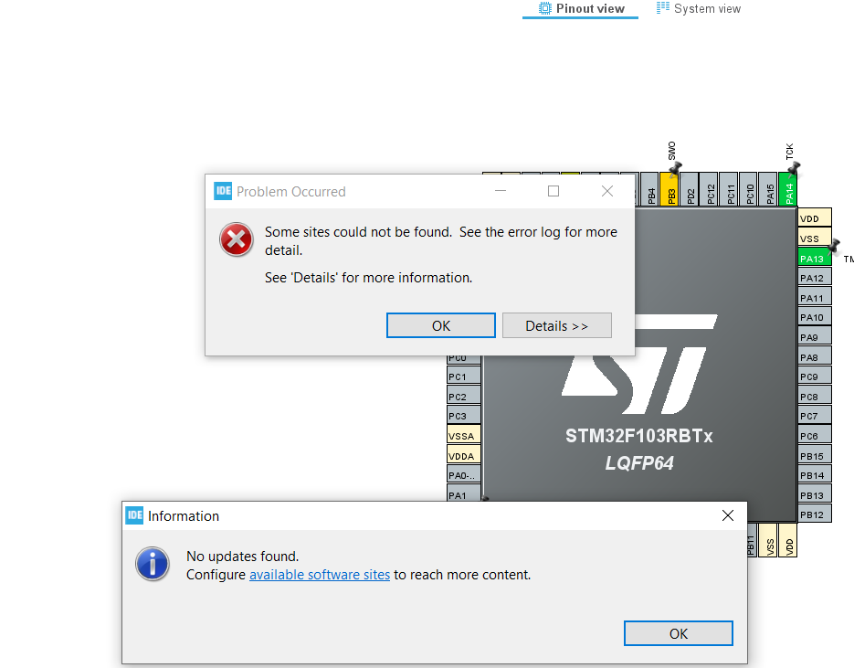 I am kinda new with the STM32 family (just bought a STM32F103RB) but today I was trying to configure my workbench to start using it but seems like I cannot connect it to the internet the detailed error which appears is this:*