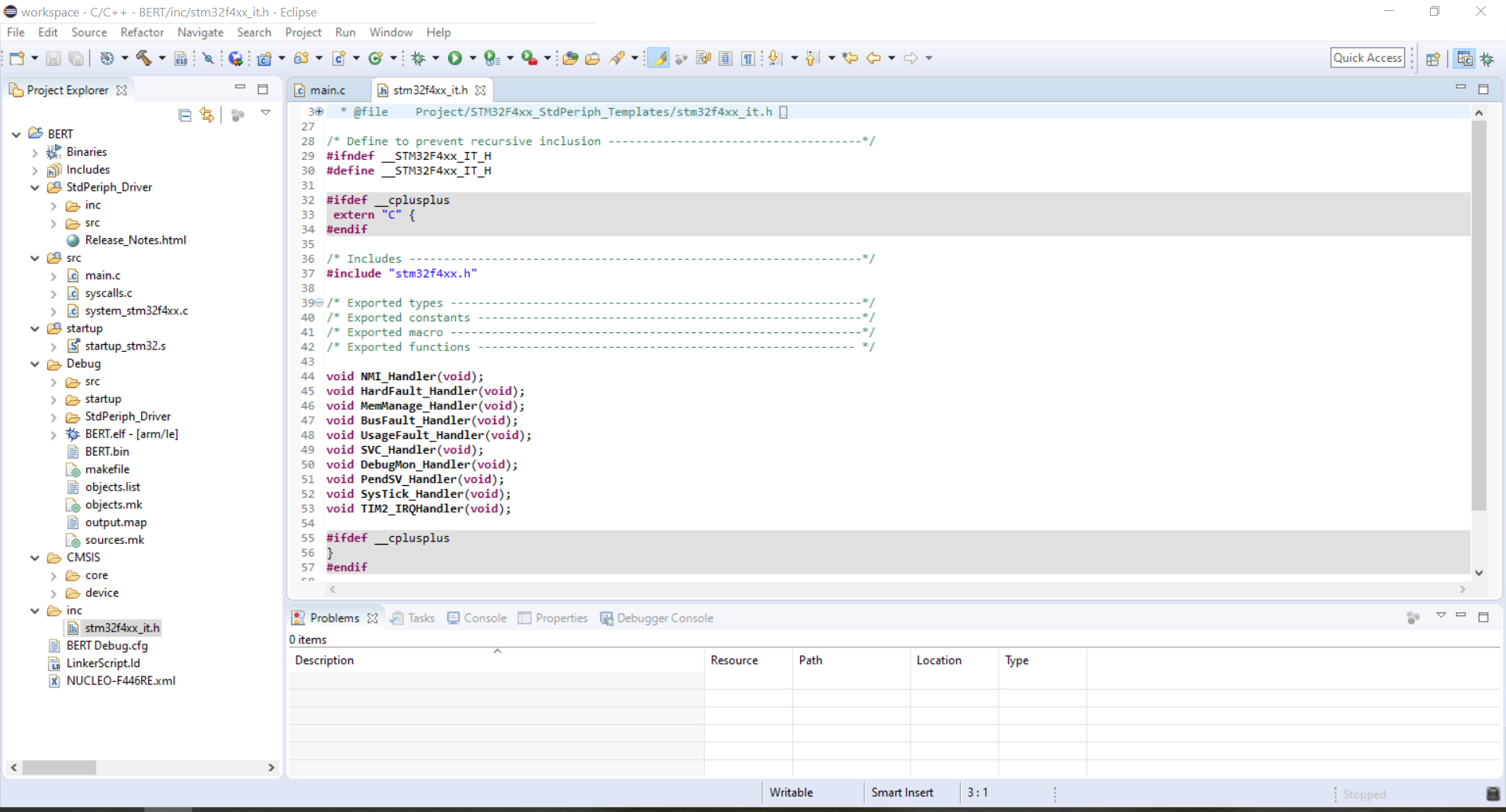 The project is created with a main.c and a interrupt file (stm32f4xx_it.h). Unfortunatly it won’t create a stm32f4xx.c file. Or I can’t find that file. Can someone help me fix this issue?