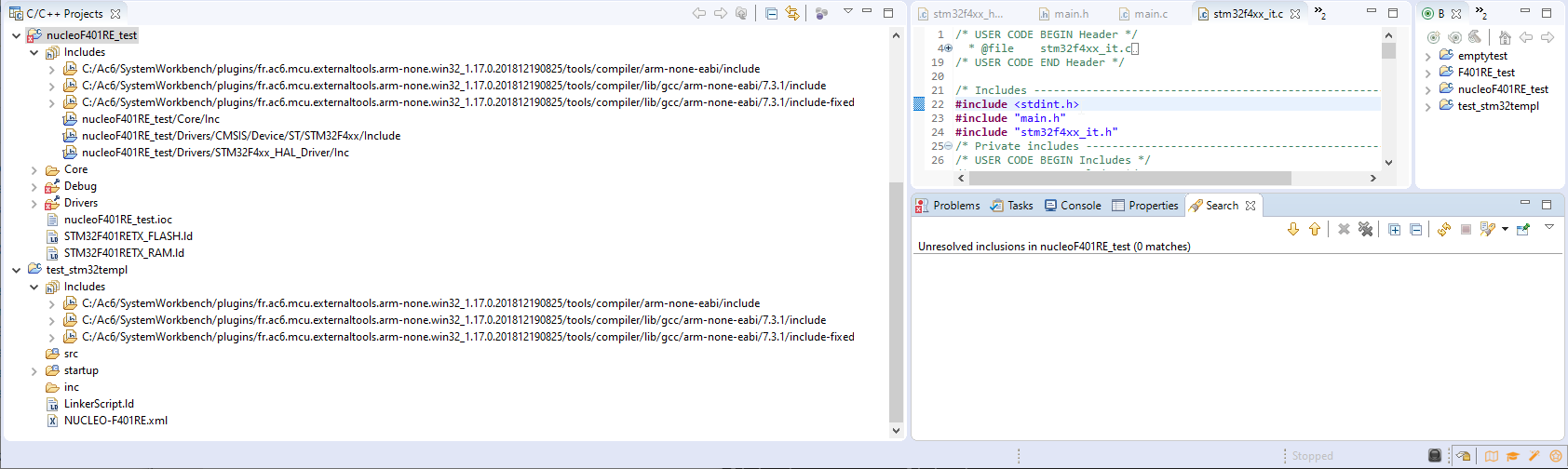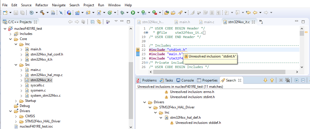 , and i’ve tried following it: that is, in a project started in STM32CubeIDE, and then imported in System Workbench, I added “include stdint.h” in the “*_it.h” file - unfortunately, I get this: