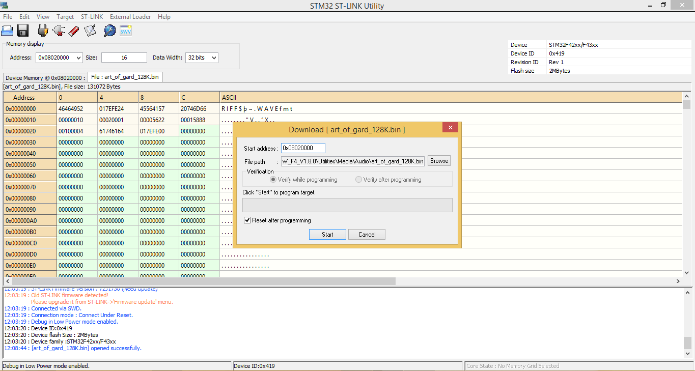 tool to load “/Utilities/Media/Audio/art_of_gard_128K.bin” file to the STM32