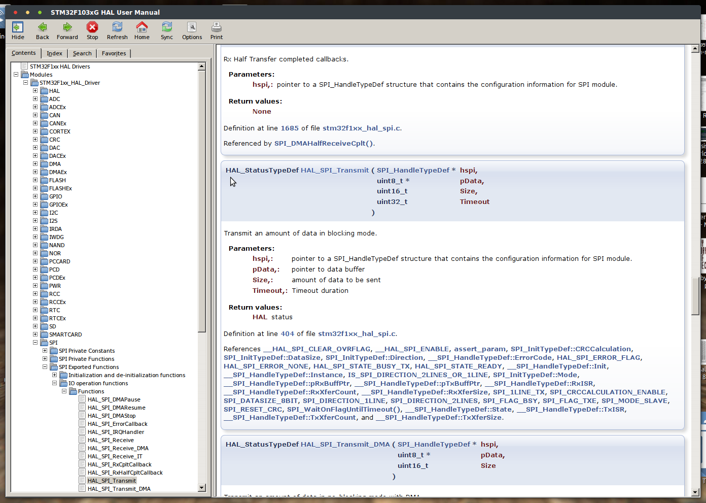 ps: The ST help screenshot for HAL_SPI_Transmit() is attached.