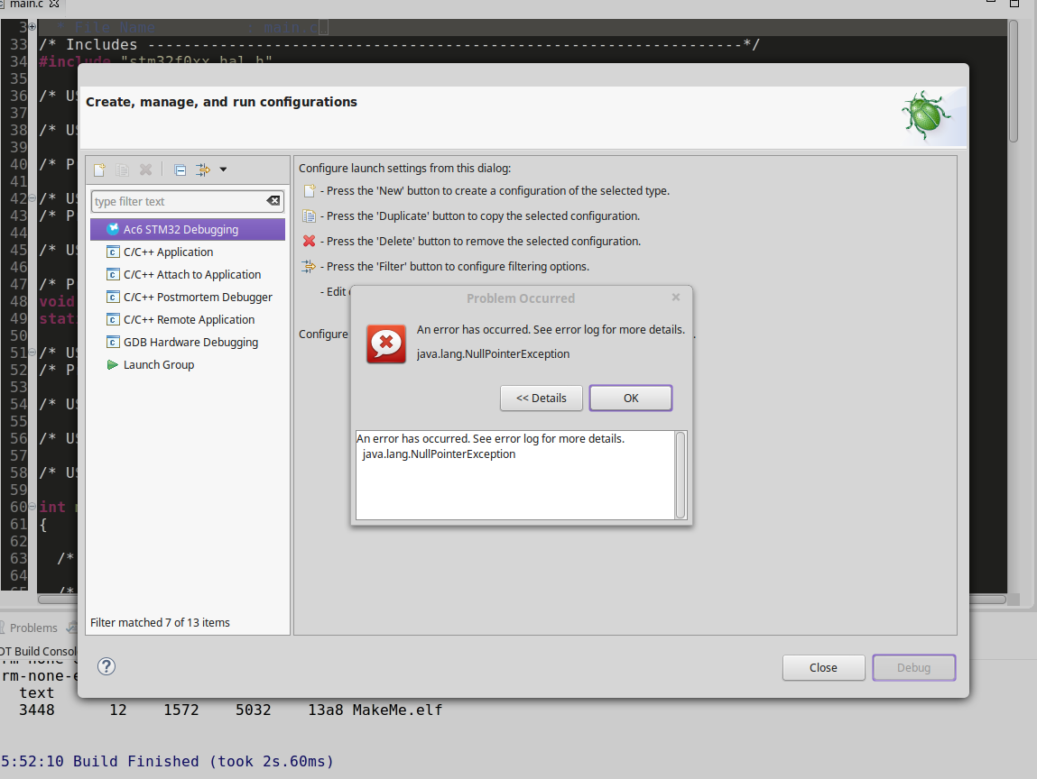 [SOLVED]NullPointerException with Creating Debug Profile