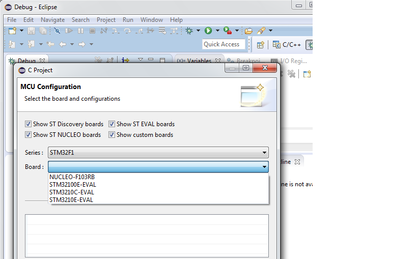 just stared STM32 work bench on eclipse setup for stm32f103c8t6, struck in mcu configaration window...my board name is not showing...pls check attachemnt