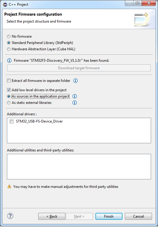 I’m trying to start a new C++ project for the STM32F3DISCOVERY board.