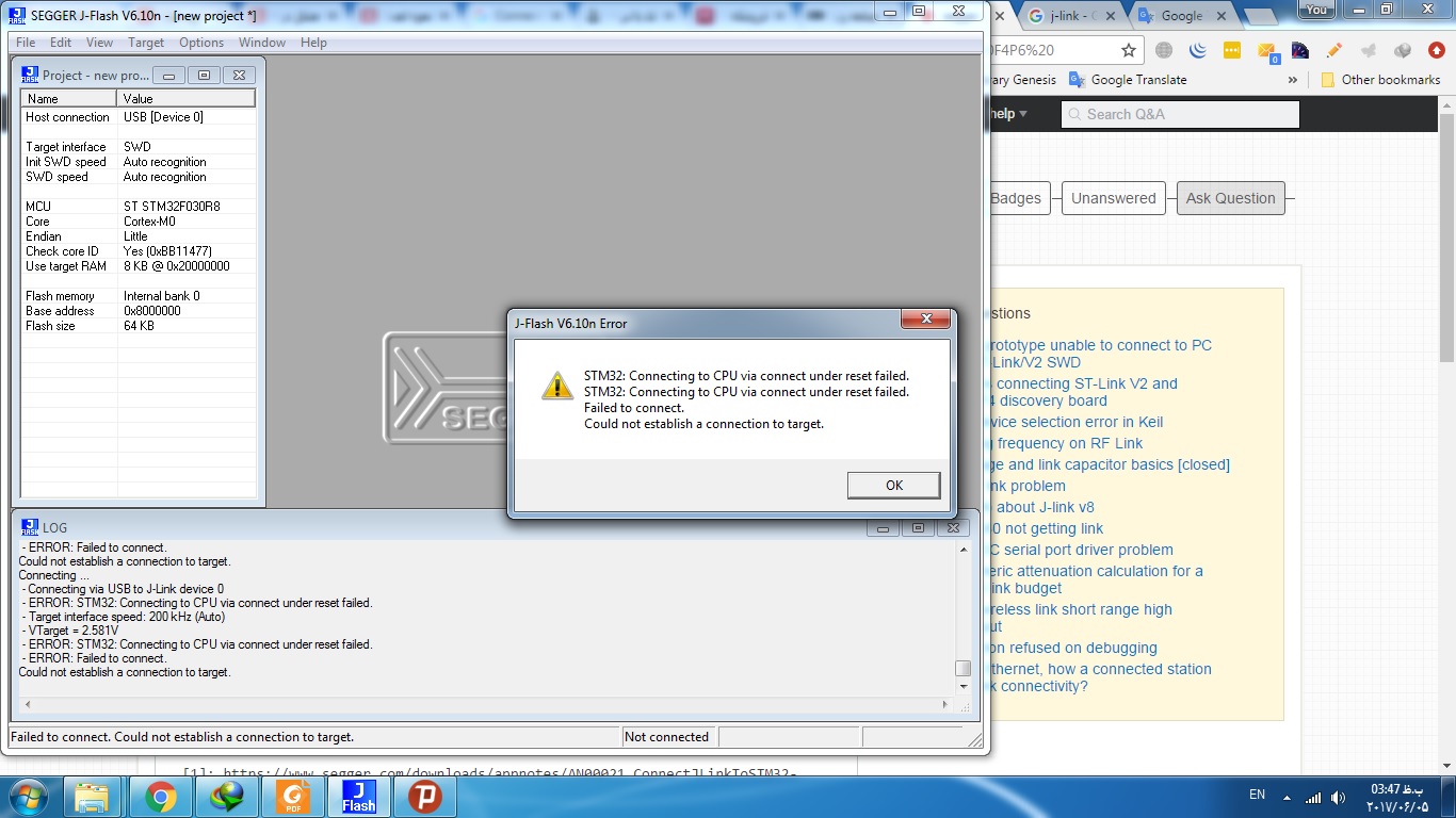 Fail to connect segger j-link v8 with STM32F030F4P6
