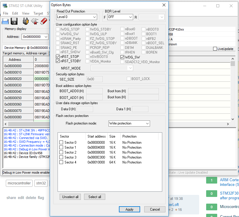 Write option bytes