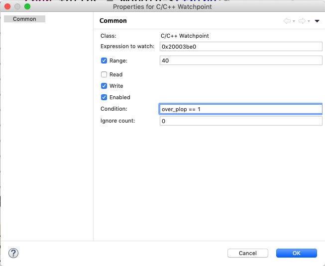 Now i create a conditional watchpoint :