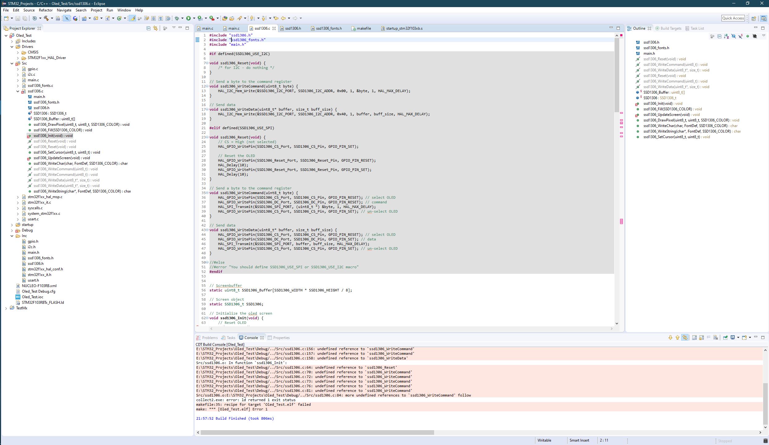 I am a beginner with STM32. I use CubeMX and OpenSTM32 AC6 for programming. My first project is an OLED display (ssd1306) on the Nucleon F411RE board. I have an OLED display (ssd1306) and want to import the headers and source files into OpenSTM32. Can someone tell me how that works.