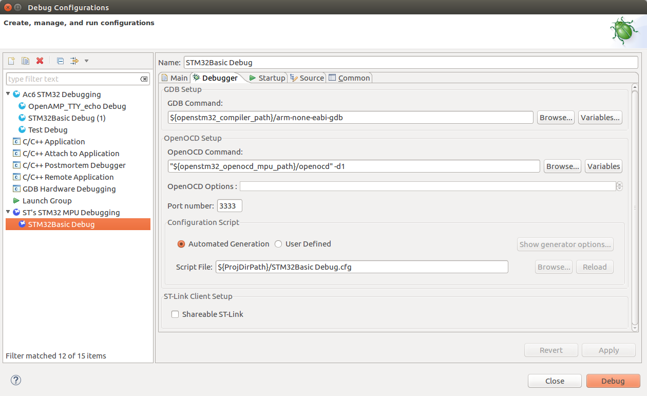 I am currently working with the STM32MP157C-DK2, and I cannot run the debug. I am running code generated by the STM32CubeMX, I also tried running debug on the OpenAMP_TTY_echo from the STM32CubeMP1 package, but I get the same errors. I tried reinstalling System Workbench, and my target is set up correctly.