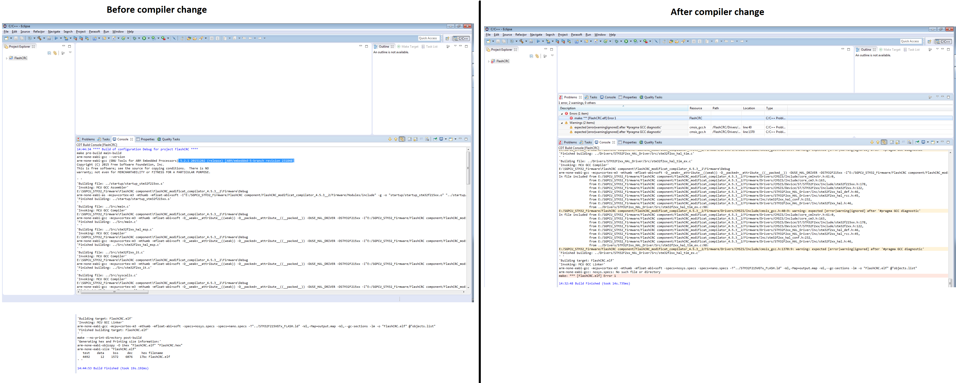 I have attached the print screens taken before and after compiler change.